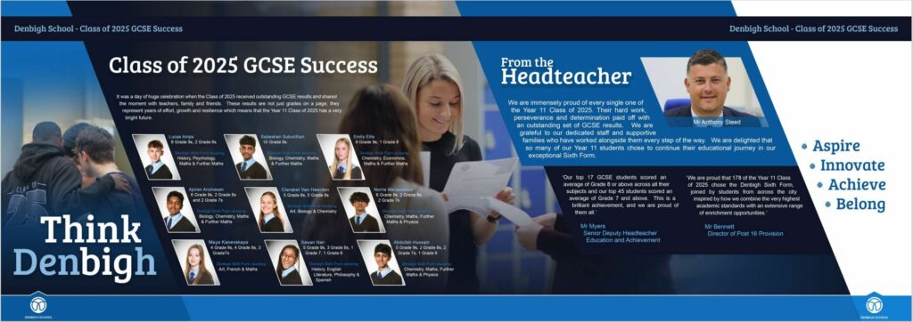 Please click on the link to the DfE performance tables for details of Denbigh School’s examination results.