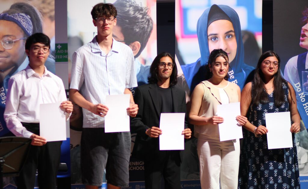 Over 100 awards were given out on the night recognising academic achievement and outstanding contribution and for participation in extra-curricular activities. A highlight of the evening was the awarding of our ‘Creative Arts Lifetime Achievement Awards’ which are given to Year 13 students who have made an outstanding contribution to the Creative Arts throughout their time at Denbigh. This year Carrera Rishica Jain, Vikram Nair, Rania Shahid Pozo, Oliver Stepien, Lap Yeung Tong & Douglas Wood were recognised. We are proud of them all and look forward to hearing about their artistic journeys after Denbigh.