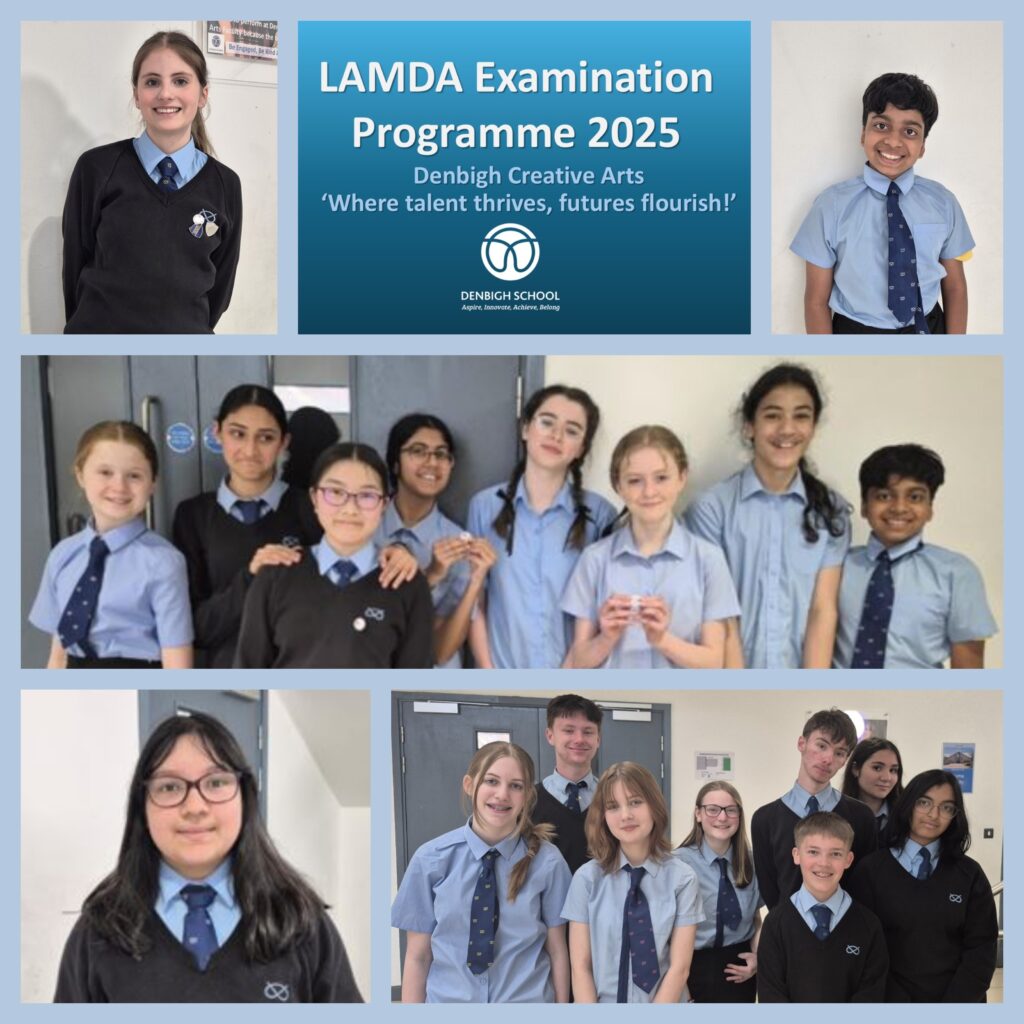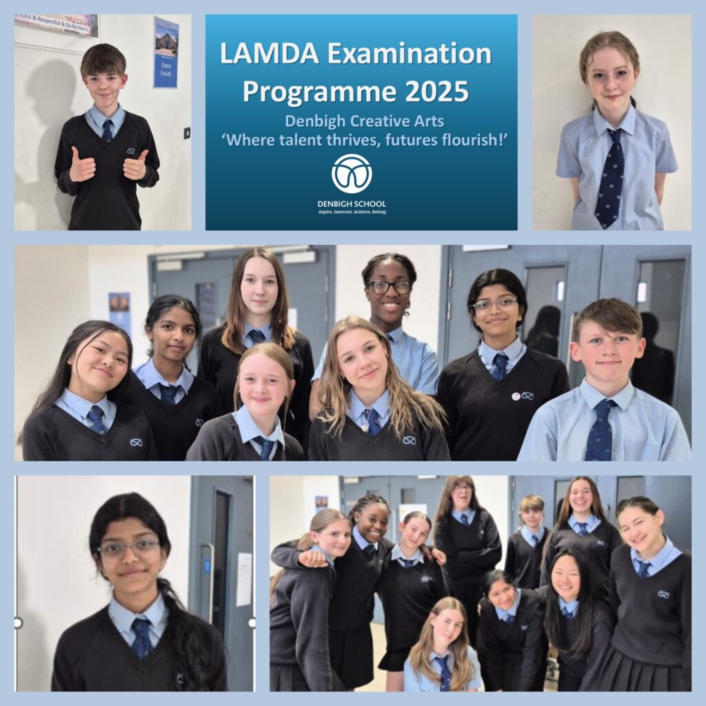 We are proud of the 40 talented students who recently took part in Denbigh’s first ever LAMDA (London Academy of Music & Dramatic Art) examination programme. This exciting new initiative saw students from Year 8 to Year 11 embrace the opportunity to develop their performance skills in a structured, nationally recognised format.