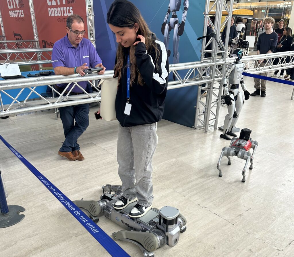 ‘My experience of the Robotics event was entirely positive and provided me with in-depth knowledge that aided me to a obtain a better understanding of the field of robotics and AI. One of the coolest things was speaking to the participants in the competitions about their robots, and how they operated to fit the task at hand; the interactions we had with them were very insightful, we even got to talk about if AI/robots are going to take over the world! There were also non-competing robots, that resembled dogs and did tricks – it was very exciting. One of the robots which caught my eye was one that could play ‘rock paper scissors’. The robot analysed the players’ hand to determine if it was rock, paper or scissors – it was mostly a draw! Another interesting thing was boarding the self-driving bus. It was excellent – from the explanation of how it worked to all the safety mechanisms it had in place – the sudden stops where exhilarating to be honest! Overall, I had a great time, learned new things and saw things that I thought I would only do if from a screen.’
