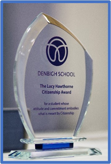 Lucy Hawthorne, who the award is given in memory of, attended Denbigh from 2003 through to 2007, when she sadly passed away. During that time, Lucy made a real impact on the school with her infectious smile and her boundless energy and enthusiasm for anything related to the wider life of the School, especially Citizenship. Lucy’s Award is given annually to a student who best epitomises the spirit of Citizenship and community in our school and this year’s recipient, Trinity is absolutely that student!