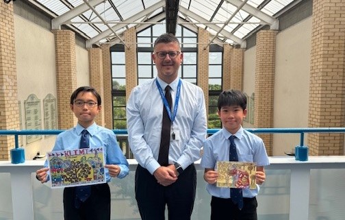 The winners of our Year 7 Art Poster Competition, which celebrated the work of Austrian artist, Gustav Klimt have been announced and celebrated at our recent Art Exhibition.  Calum Chiu and Mak Cheung produced the winning designs.  Both winners and their families were invited to our recent Art Exhibition held on the night of the Creative Arts and Arts Celebration of Success Evening, to recognise their win. They also met Mr Steed to show him their winning designs.