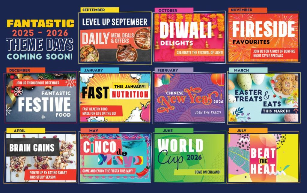 Our School restaurant is off the main street and offers an extensive food range whether you are looking for a ‘grab and go’ option or to sit down for a traditional hot meal.  We start with a breakfast service at 8am and then open again at break and lunchtime.  The menu is regularly updated to include seasonal produce, and there are exciting theme days to celebrate cultural and community events.