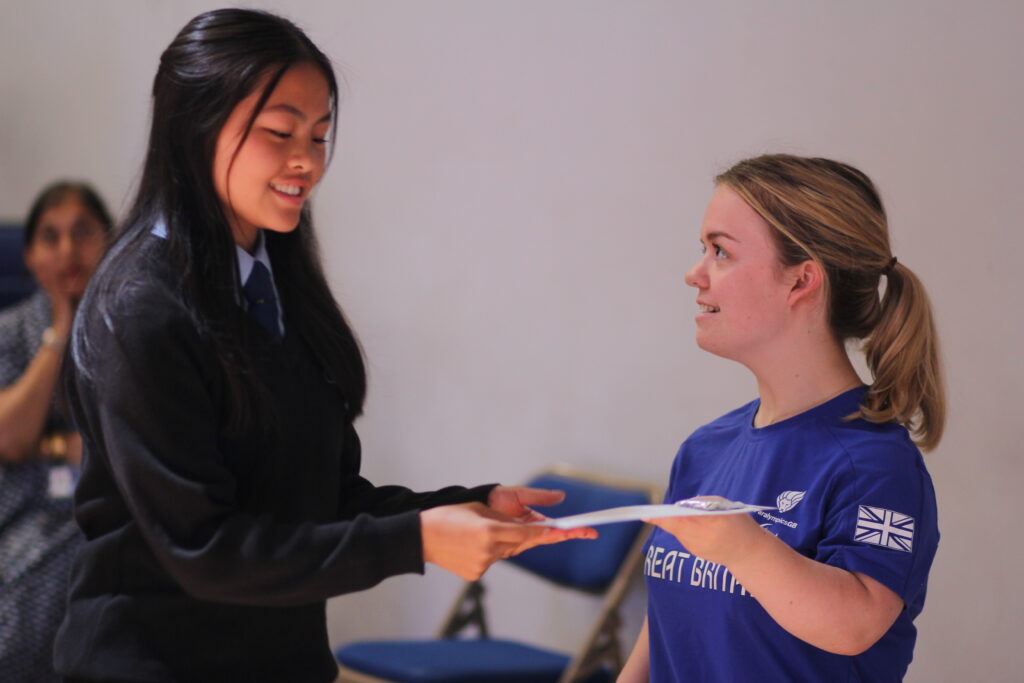 Mr Linbourne, Head of our PE Faculty said: ‘The Sports Awards Ceremony is a highlight for myself and my colleagues in the PE Faculty as it is our opportunity to recognise the students who, through their commitment and talent, bring Denbigh so much sporting success. We are delighted that Maisie was our special guest on the night and that she brought her gold medals with her! It was inspiring for our students to meet her and discover the journey Maisie has followed to become an Olympic gold medallist.’